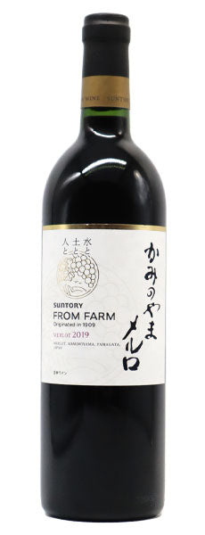 希少!国産辛口赤ワイン愛好家大注目!年産(全世界に)5,808本のみの少量生産!純国産メルロー種100%!しかも山形県産メルロー100%!しかも上山市産メルロー100%!世界を感動させる“日本ワイン”を!日本ならではの“産地”と品種”の可能性を追求し、厳選した“国産ぶどう100%”のプレミアムワイン!サントリー日本ワインから新発売!~水と、土と、人と~がコンセプトの「フロムファーム」のテロワールシリーズ!青森・長野・山形の産地の方々と畑からぶどうと向き合い、テロワールの違いによる産地の個性を味わうワイン!~凝縮した果実味とやわらかな口当たり、さくらんぼのような可愛らしいフルーツの香り~!この「山形・かみのやま・メルロ」は、マロラクティック発酵後フレンチオーク樽100%で、しかも驚異の12ヶ月熟成!しかも蔵王連峰の裾野に広がる寒暖の差が激しく水はけの良いブドウ栽培に適した山形県上山地区の、しかも陽あたりの良い傾斜地のメルロー種100%で造られる、エレガントな香りと凝縮した果実味がバランスよく存在する、究極辛口赤ワイン!2019年についてワイナリーは「1~2月上旬まで平年並みの気温だが、降水量が少なく乾燥した気象だった。4~5月上旬までは平年~やや高い気温、日照時間で推移した。7~8月まで少雨、高温傾向となり病気がほとんど発生せず健全な状態で生育した。少雨高温の影響でヴェレゾンはゆっくり進んだ。10月は台風19号の影響を受けまとまった降雨があり、また曇りがちの天候が続いたが、健全性に問題はなかった。健全性と熟度をしっかり見極められ、最適なタイミングで収穫できた為、凝縮感と香り豊かなワインに仕上がった。」とコメント!醸造家は、「やや暗めのルビー色。プラムや佐藤錦などの赤いさくらんぼを連想させる果実の香りに、甘唐辛子と山椒の葉の様な涼やかなアクセント。綺麗に溶け込んだ樽の甘い香りが複雑さを与える。繊細さのあるやわらかな果実味と、上山らしいハリのある酸味、キメの細かいタンニンの上品なワインに仕上がったヴィンテージ。」とコメント!究極かみのやま産メルローが最新ヴィンテージ[2019]年で限定で極少量入荷!